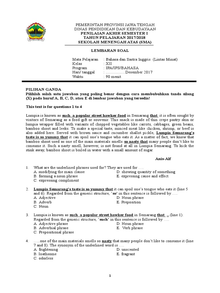 Untuk jenis soal yang kami bagikan yaitu soal pilihan ganda (multiple choice). Sedangkan untuk kunci jawaban juga sudah kami sertakan, dengan tanda huruf tebal (bold) pada pilihan jawaban. Will house over two hundred families, were completed last month. Soal cause and effect dan jawabannya. Alat penyusun sistem pernapasan manusia yang merupakan daerah.
